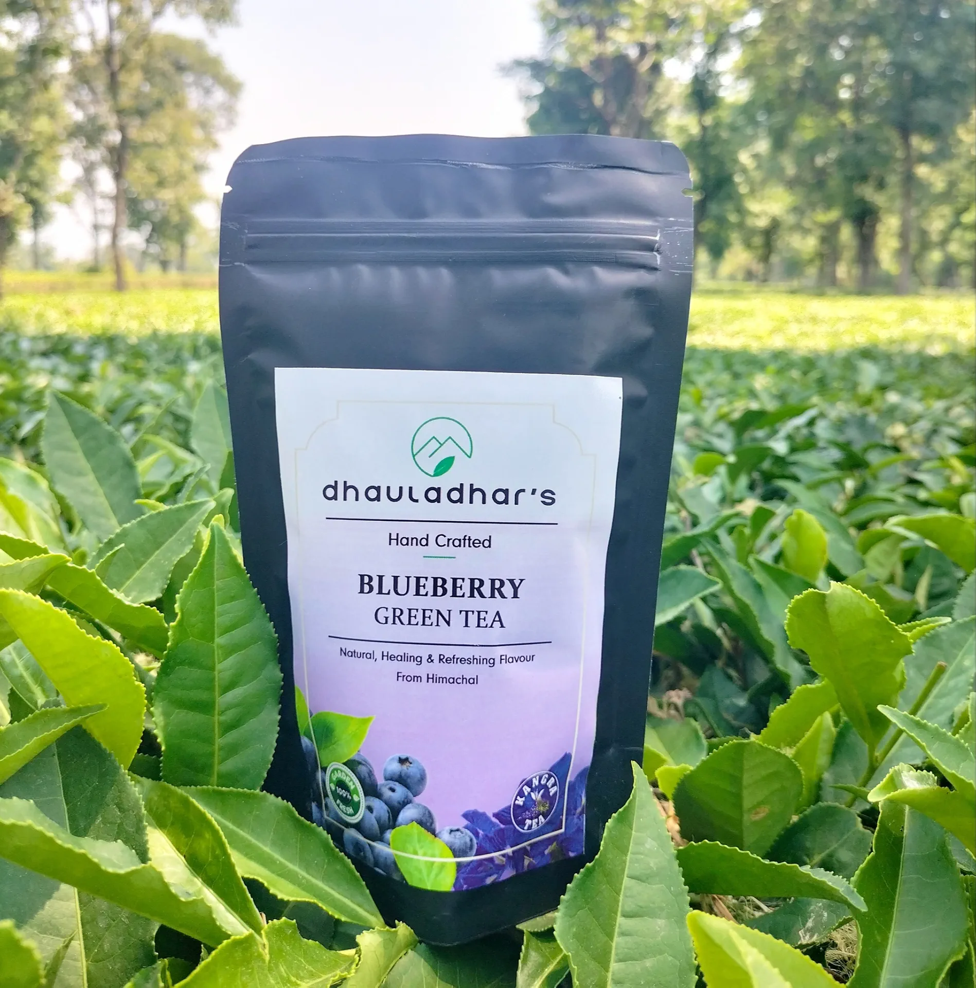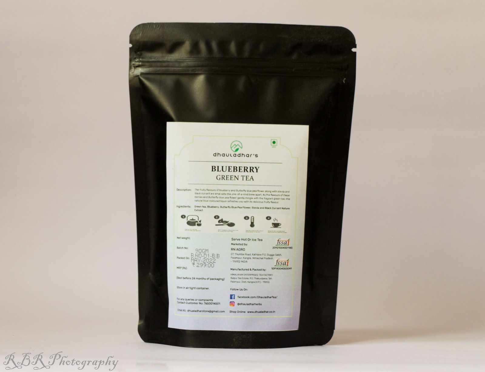 Ingredients: Natural green kangra tea leaves with blueberry and butterfly blue pea flower along with stevia and black currant Nature Extract