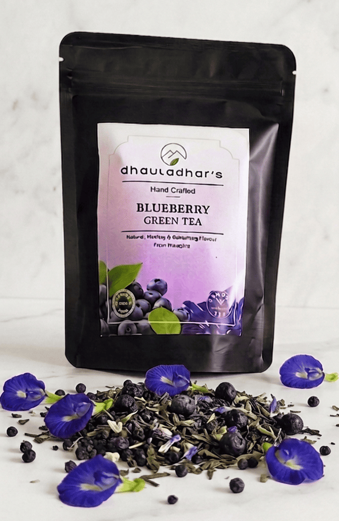 Dhauladhar’s Blueberry Green Tea is a unique and refreshing blend of green tea, blueberry and butterfly blue pea flower. This exquisite tea is a perfect balance of sweet and tart flavours, with a delightful natural blue colour. Packed with the goodness of antioxidants, this tea helps to boost immunity and improve overall wellbeing. Enjoy this tea for its fruity flavour and health benefits.