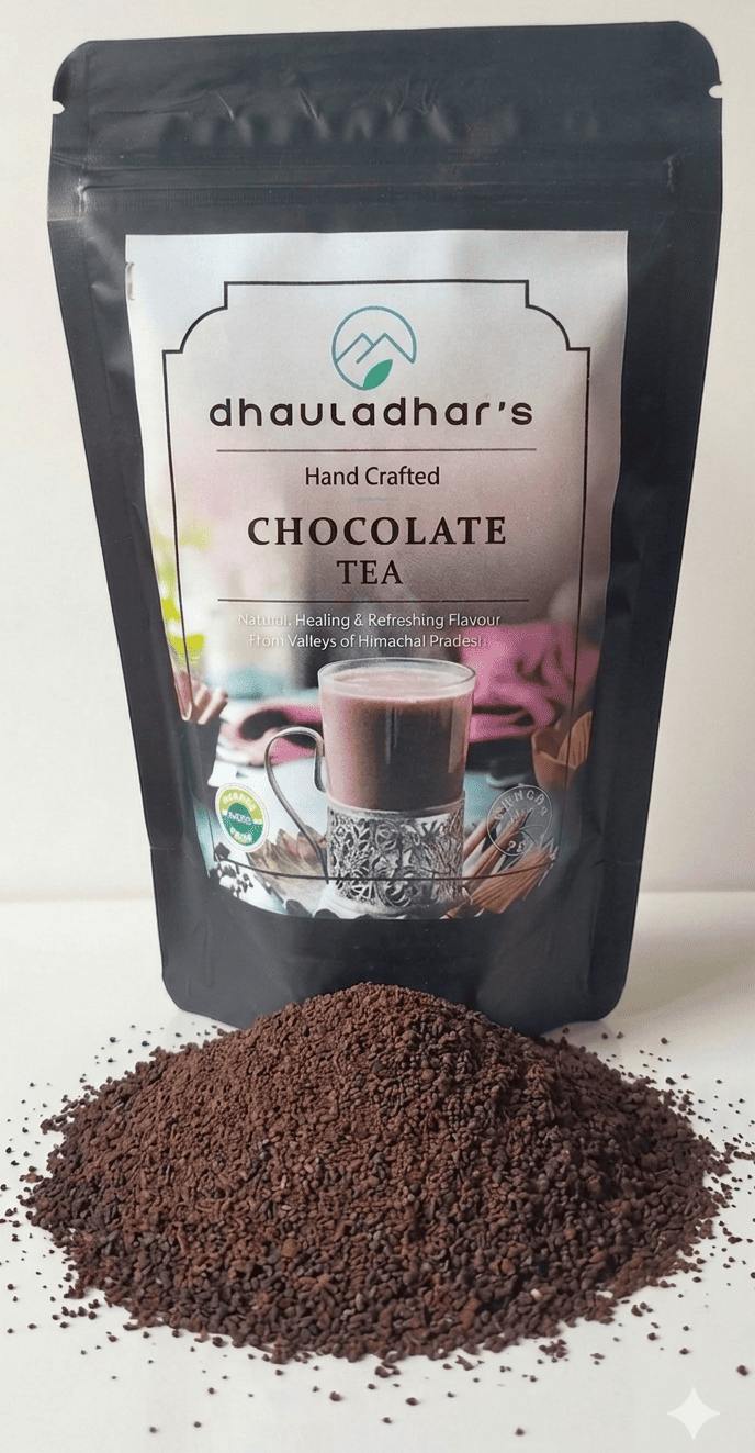 Indulge your senses with Dhauladhar’s Chocolate Tea, a luxurious and aromatic fusion that brings together the rich essence of premium tea leaves and the delightful decadence of cocoa. Inspired by the majestic Dhauladhar range, where crisp mountain air and pristine landscapes shape extraordinary flavors, this unique blend offers a smooth, velvety sip with a gentle chocolate-like finish.