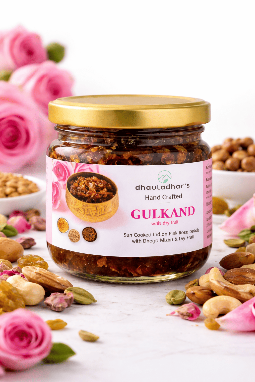 Indulge in the richness of tradition with our Dryfruits Gulkand, a luxurious blend of fragrant rose petals and handpicked dry fruits crafted to deliver both taste and wellness in every spoonful. Prepared using time-honored methods, fresh rose petals are gently sun-cooked with natural sweeteners to preserve their aroma, flavor, and nutritional essence, then enriched with crunchy almonds, cashews, pistachios, and other wholesome ingredients.