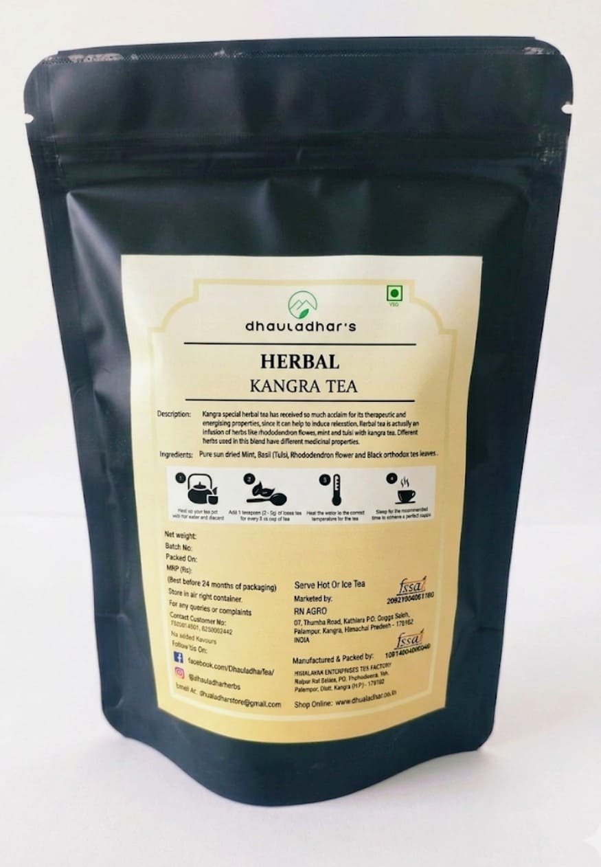 Tea is a unique ayurvedic formulation of pure herbal ingredients with effective therapeutic values. It regulates many health complications. It helps in losing excess fat, reducing constipation and custrail gas formation as well as acidity. It is a sugar-free formulation that contains Kangra Black tea leaves, only herbs, along with essential vitamins & micronutrients.