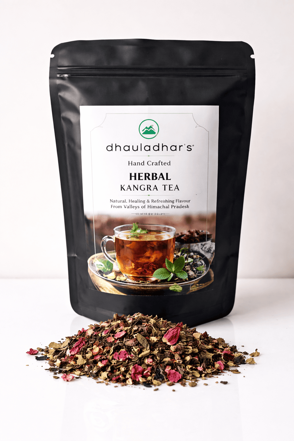 Rhododendron flowers, rose petals, tulsi ,mint and orthodox tea leaves.