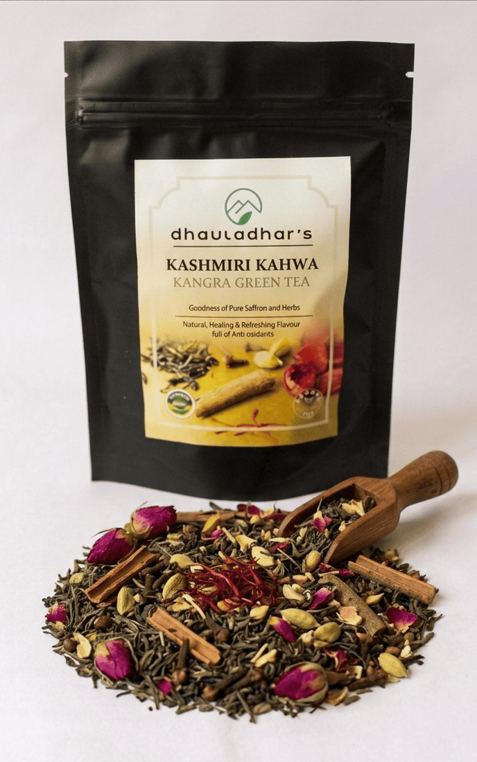 Experience the rich cultural heritage of Kashmir with our Kashmiri Kahwa Green Tea, a beautifully spiced blend of premium green tea and fragrant spices such as cinnamon, cardamom, and saffron. This warm, aromatic tea is cherished for both its flavor and its soothing properties, making it perfect for tranquil evenings or cool mornings. With every sip, enjoy the balance of subtle spice, refreshing green leaf notes, and deep heritage — a truly soul-nurturing cup.